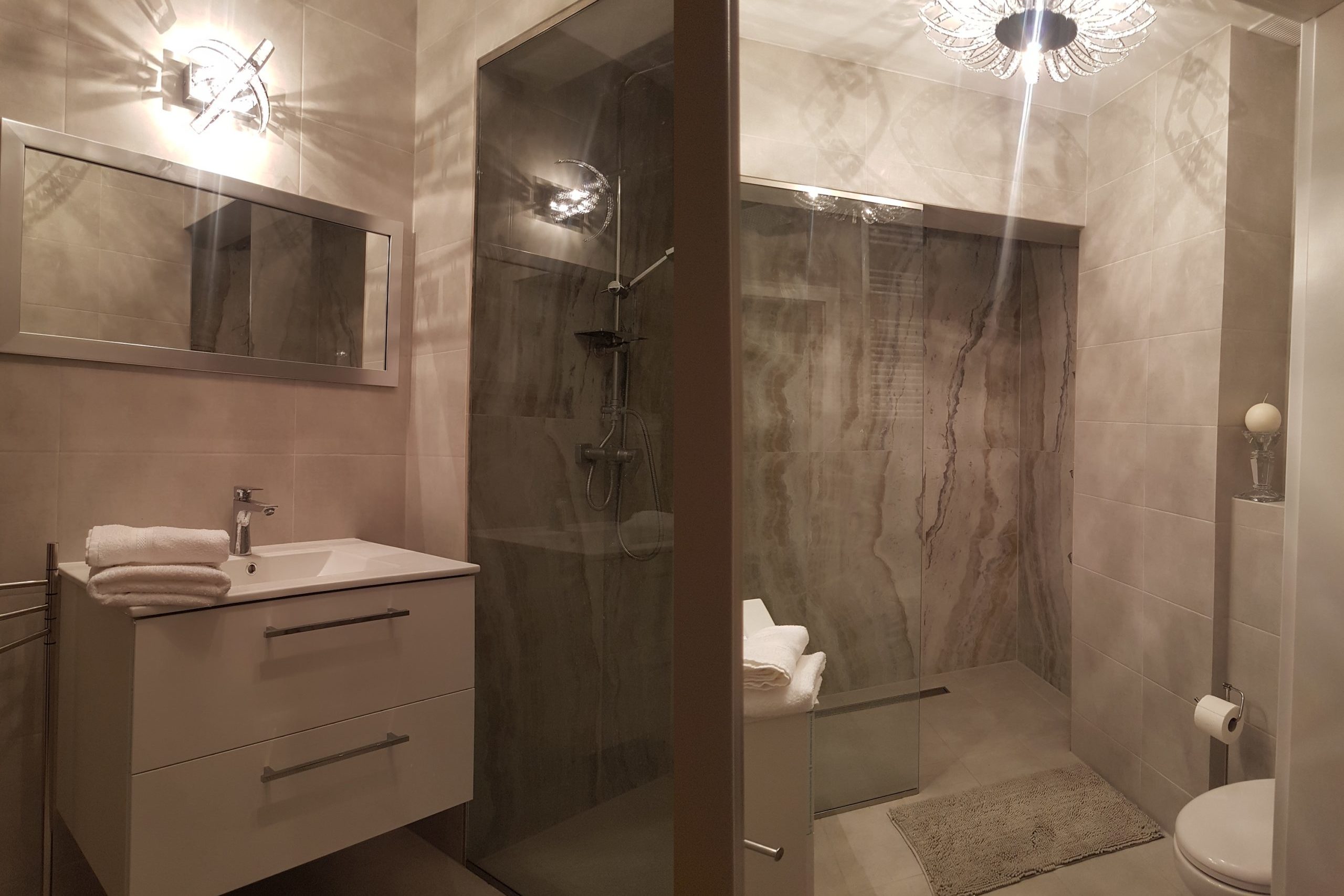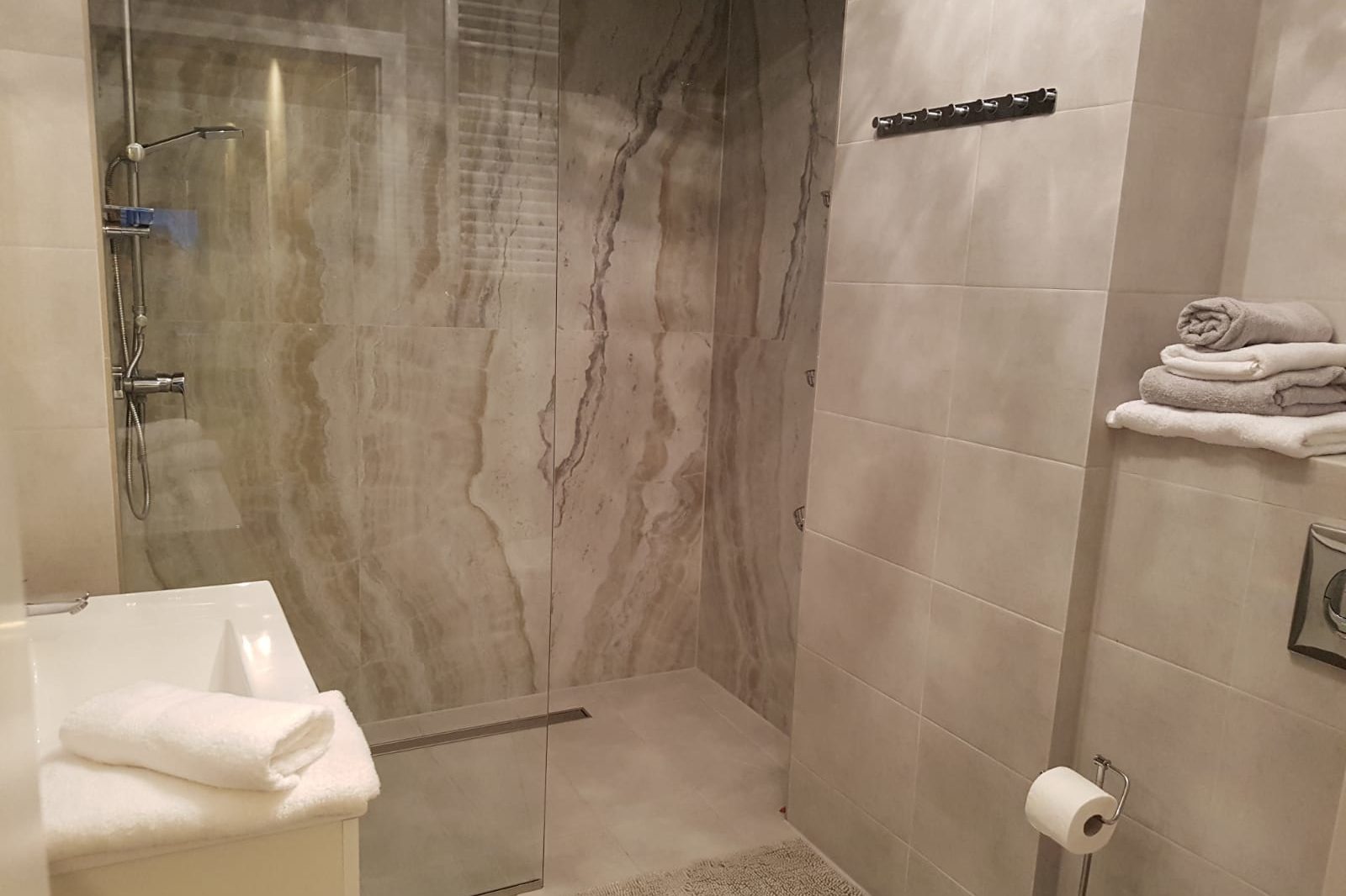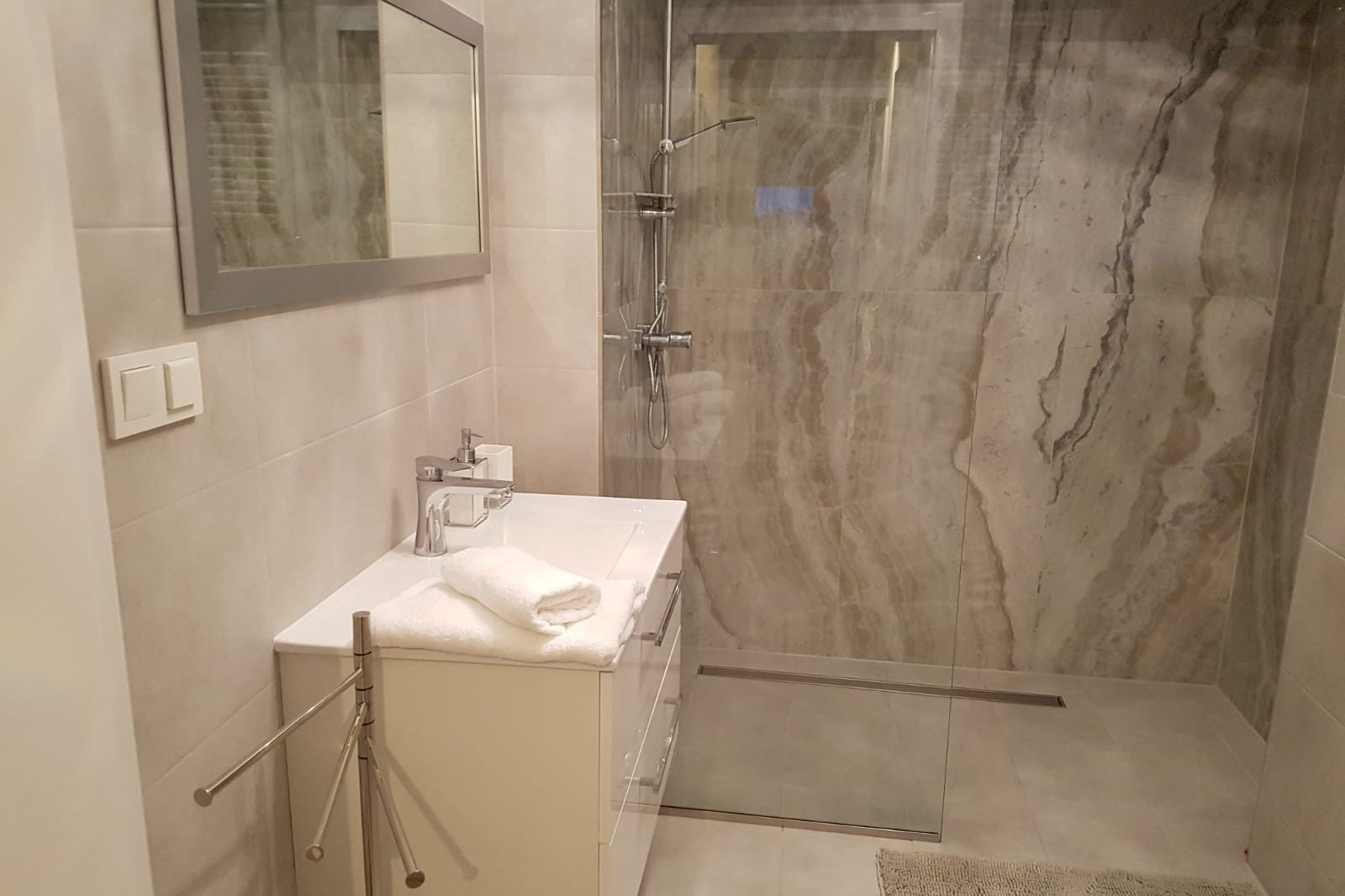 Kabina bezprogowa z natryskiem.