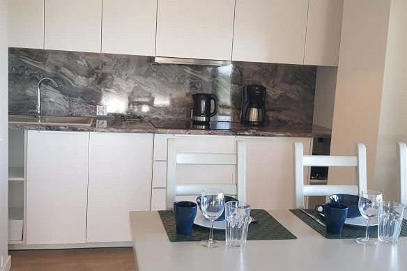 sofą. Smart TV+ Wi-Fi ,w pełni wyposażony aneks kuchenny ( lodówka,kuchenka